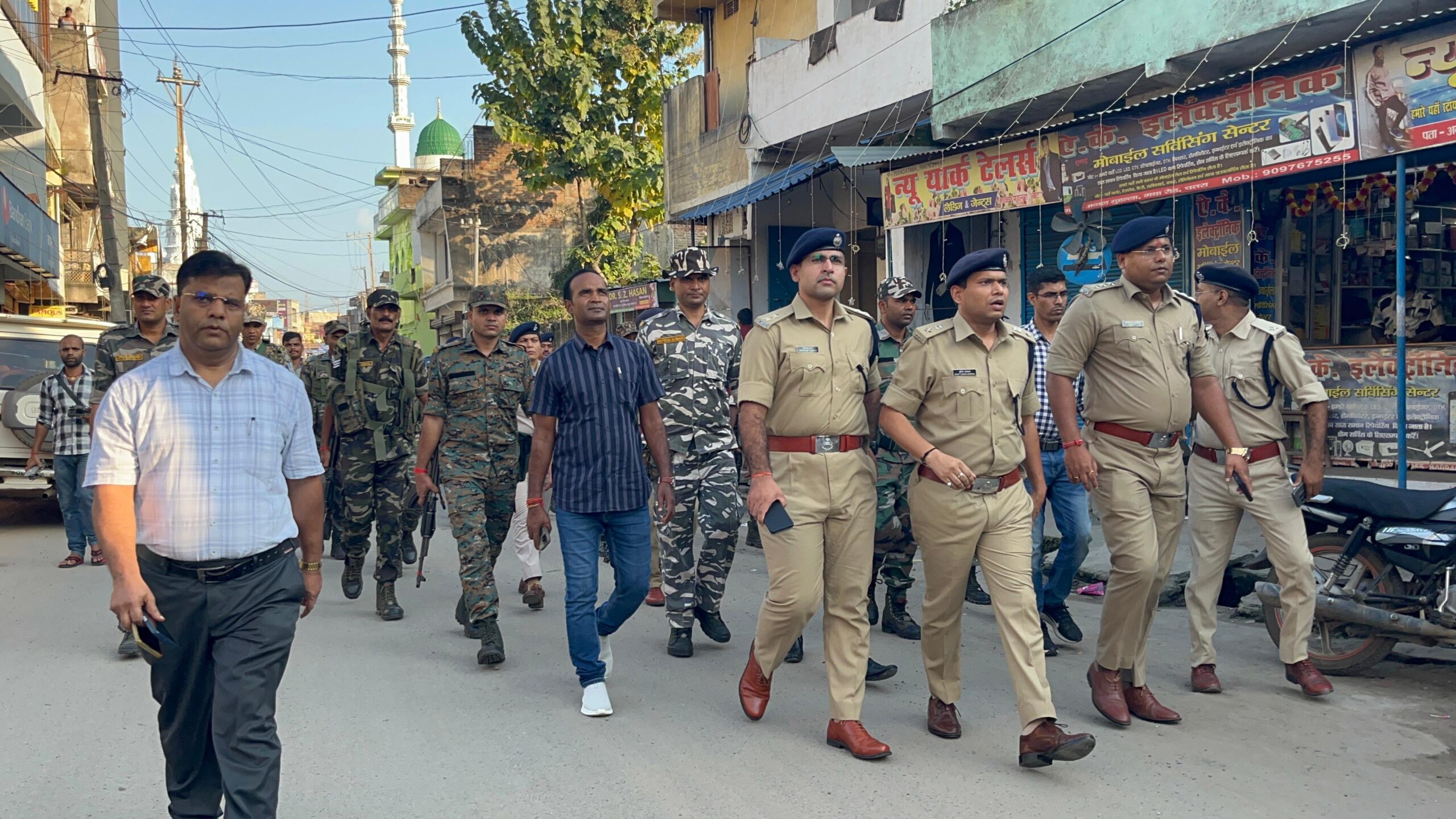 यह फ्लैग मार्च पुलिस अधीक्षक के निर्देशन में अनुमण्डल पदाधिकारी चतरा, अनुमंडल पुलिस पदाधिकारी, चतरा एवं प्रखण्ड विकास पदाधिकारी चतरा, सदर अंचल अधिकारी के नेतृत्व में संपन्न हुआ। इसमें सदर थाना प्रभारी/महिला थाना प्रभारी, सहित बड़ी संख्या में जिला बल एवं IRB के जवान शामिल रहे, इसके अतिरिक्त चतरा जिला के सभी थाना में अनुमण्डल पुलिस पदाधिकारी/पुलिस निरीक्षक एवं थाना प्रभारी के नेतृत्व में भी फ्लैग मार्च का आयोजन किया गया। सदर थाना अंतर्गत फ्लैग मार्च चतरा समाहरणालय से प्रारंभ होकर शहर के प्रमुख एवं संवेदनशील स्थान जतराहीबाग, बाजार क्षेत्र, केशरी चौक, गुदरी बाजार, बुढ़वा मंदिर, काली मंदिर, अव्वल मुहल्ला मस्जिद, मुख्य पोस्ट ऑफिस चौक, नगर भवन, पुराना कोर्ट आदि क्षेत्रों/पंडालों का भ्रमण किया गया। इस दौरान आम नागरिकों को भी सुरक्षा का भरोसा दिलाया गया तथा शांति और सद्भाव के साथ पर्व मनाने की अपील की गई। विशेष सुरक्षा व्यवस्था के तहत ड्रोन कैमरे से लगातार निगरानी की जा रही है। पुलिस अधीक्षक ने बताया कि सभी संवेदनशील इलाकों में ड्रोन की तैनाती की गई है, ताकि किसी भी अप्रिय स्थिति पर तत्काल कार्रवाई सुनिश्चित की जा सके। चतरा पुलिस आम जनता से अपील करती है कि दुर्गा पूजा के इस पावन अवसर पर शांति, भाईचारे एवं साम्प्रदायिक सौहार्द के साथ पर्व का आनंद लें तथा किसी भी आपात स्थिति में डायल-112 पर एवं संयुक्त जिला नियंत्रण कक्ष के मोबाईल नं0 9117619352/9334103794 (पुलिस कंट्रोल रूम) से तुरंत संपर्क करें।