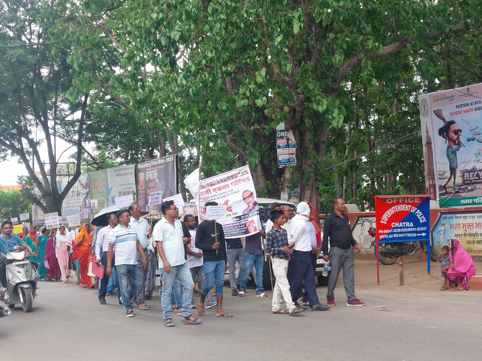 Chatra : राष्ट्रीय आदिवासी एकता परिषद द्वारा दिनांक 27/07/2023 दिन गुरुवार को 22सूत्री मांगो को लेकर रैली निकाली गईं,रैली का नेतृत्व राष्ट्रीय आदिवासी एकता परिषद के जिला अध्यक्ष जेम्स मिंज व इंपा के जिला अध्यक्ष धनेश्वर यादव ने किया रैली में राष्ट्रीय आदिवासी एकता परिषद के बैनर तले बहुजन क्रांति मोर्चा, राष्ट्रीय पिछड़ा वर्ग मोर्चा, राष्ट्रीय किसान मोर्चा, भारत मुक्ति मोर्चा, भारतीय विद्यार्थी मोर्चा,सरना समिति की सहभागिता व समर्थन रहा, रैली रैली सरना टोगरी, पकरिया से प्रारंभ होकर पोस्ट आफिस,केशरी चौक होते हुए डीसी ऑफिस पहुंच कर सभा में तब्दिल हो गईं, जहाँ कई वक्ताओं ने अपनी अपनी बात रखी, जिसके बाद राष्ट्रपति के नाम उपायुक्त को ज्ञापन सौपा गया,जिला अध्यक्ष जेम्स मिंज ने कहाँ की भारत मुक्क्ति मोर्चा के राष्ट्रीय अध्यक्ष मा0 वामन मेश्राम व राष्ट्रीय आदिवासी एकता परिषद के राष्ट्रीय अध्यक्ष एच एन रेकवाल साहब ने देश के आदिवासिओ पर हो रहे अन्याय अत्याचार के विरोध में 22 सूत्री मांगो को लेकर चार चरणों में देश के 31राज्यों के 567 जिलों में एक साथ राष्ट्रव्यापी आंदोलन की घोषणा किया है, जिसका आज जिला स्तर पर रैली प्रदर्शन का कार्यक्रम संपन्न हुआ, आंदोलन का चौथा और अंतिम चरण 7 अगस्त 2023 को भारत बंद किया जायेगा, RSS और बीजेपी सरकार द्वारा आदिवासियों की पहचान ख़त्म करने व जल, जंगल, जमीन से बेदखल करने के लिए, ucc, भारत माला प्रोजेक्ट,आदिवासियों को वनवासी के नाम पर हिन्दू घोषित करने, डीलिस्टिंग के नाम पर अधिकारों को छीनने का षड्यंत्र, मणिपुर में आदिवासी युवातियों को नागा घूमना,evm के विरोध समेत कई मुद्दों को लेकर कार्यक्रम किया जा रहा है,हिन्दू मुस्लिम sc, st, obc, और माइनॉरिटी के अधिकारों को खत्म किया जा रहा है, मौक़े पर बहुजन क्रांति मोर्चा के जिला अध्यक्ष रामेश्वर यादव, राष्ट्रीय मूलनिवासी महिला संघ के अध्यक्ष पूनम यादव, पिछड़ा वर्ग मोर्चा के श्यामदेव मेहता, सुबास कुमार,डाढ़ा मुखिया प्रतिनिधि अनिल मिंज,आनंद तिर्की, जोन पौर,सुरेश एक्का, देव नंदन भोकता, सबनम मिंज,अल्बरीना रुंडा, शबनम मिंज, दान युषण लकड़ा,सरनेश खलखो, निर्मला करकेटा,चंद्रशेखर आजाद, अशोक दांगी, महादेव रामग्रेगोरी लिंडा,मांझी सांगा,पिटर तिर्की,बेरोनिका बखला मरिया ज्योति भाँग,चंद्रकला लकड़ा,जोसफ टोपो, जैरल एक्का, बिमल खलखो,समेत कई लोग शामिल थे