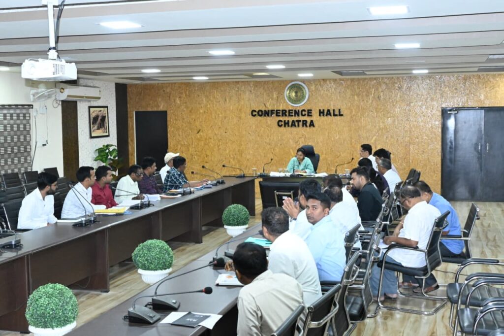 Chatra : समाहरणालय स्थित सभा कक्ष में उपायुक्त कीर्तिश्री जी की अध्यक्षता में जिला खनिज फाउंडेशन ट्रस्ट (DMFT) से संचालित योजनाओं की समीक्षा बैठक आयोजित की गई। बैठक में सभी संबंधित क्रियान्वयन एजेंसियों की उपस्थिति रही और योजनाओं की प्रगति पर बिंदुवार चर्चा की गई। बैठक के दौरान उपायुक्त ने क्रियान्वयन एजेंसियों के कार्यपालक अभियंता से अब तक हुई प्रगति की जानकारी ली और लंबित योजनाओं को शीघ्र पूरा करने का निर्देश दिया। उपायुक्त ने विशेष रूप से शिक्षा, स्वास्थ्य, पेयजल, सड़क, पुल-पुलिया तथा अन्य आधारभूत संरचनाओं से संबंधित योजनाओं की समीक्षा की और सभी विभागीय पदाधिकारियों को तय समय सीमा में गुणवत्तापूर्ण कार्य पूरा करने का निर्देश दिया। उन्होंने कार्य की गुणवत्ता सुनिश्चित करने, समय-समय पर मॉनिटरिंग करने तथा जनहित को सर्वोच्च प्राथमिकता देने पर जोर दिया। बैठक में जिला खनिज फाउंडेशन ट्रस्ट से जुड़ी विभिन्न परियोजनाओं की वर्तमान स्थिति, व्यय की प्रगति और भविष्य की कार्ययोजना पर भी विस्तृत चर्चा की गई। बैठक में उप विकास आयुक्त अमरेंद्र कुमार सिन्हा समेत अन्य संबंधित पदाधिकारी एवं कर्मी उपस्थित थे।