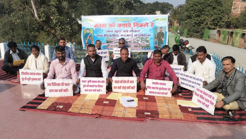 Chatra : एक दिवसीय उपवास कार्यक्रम ऐतिहासिक धरती बलिदानियों एकता अखंडता की धरती पर चतरा की जनता से जुड़ी मूलभूत सुविधा को लेकर एक दिवसीय उपवास कार्यक्रम को संबोधित करते हुवे कहा की आजादी 75 वा वर्ष का जश्न मना रहे हैं वही चतरा कई विशेष मूलभूत सुविधाओं से वंचित है जिसपर आज तक पहल नहीं किया गया है जनप्रतिनिधियों का पूरे रूप से विकाश के नाम से उदासीन रवैया है चतरा का 1857 का इतिहास शिक्षा स्वास्थ्य पर्यटन धार्मिक बिजली पानी ग्रामीण क्षेत्रों में सिंचाई का साधन पार्क कुछ भी साधन जनप्रतिनिधियों के द्वारा मुहैया नही किया गया । जनता का सवाल जो आज तक बना हुआ है।