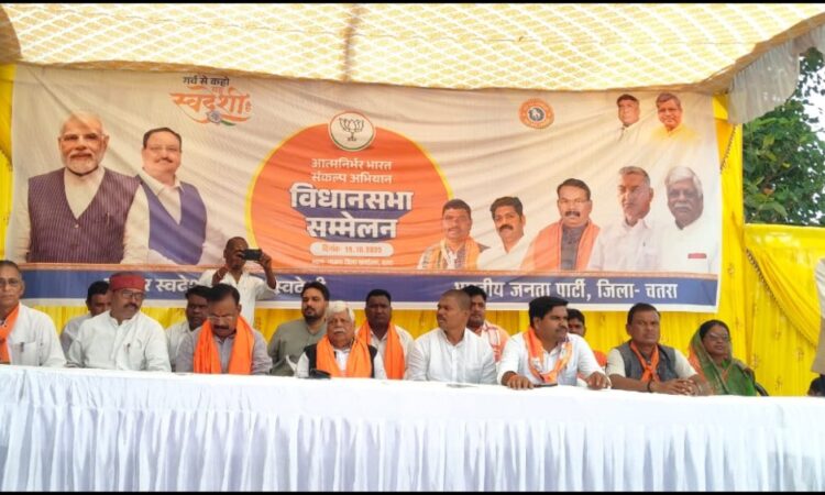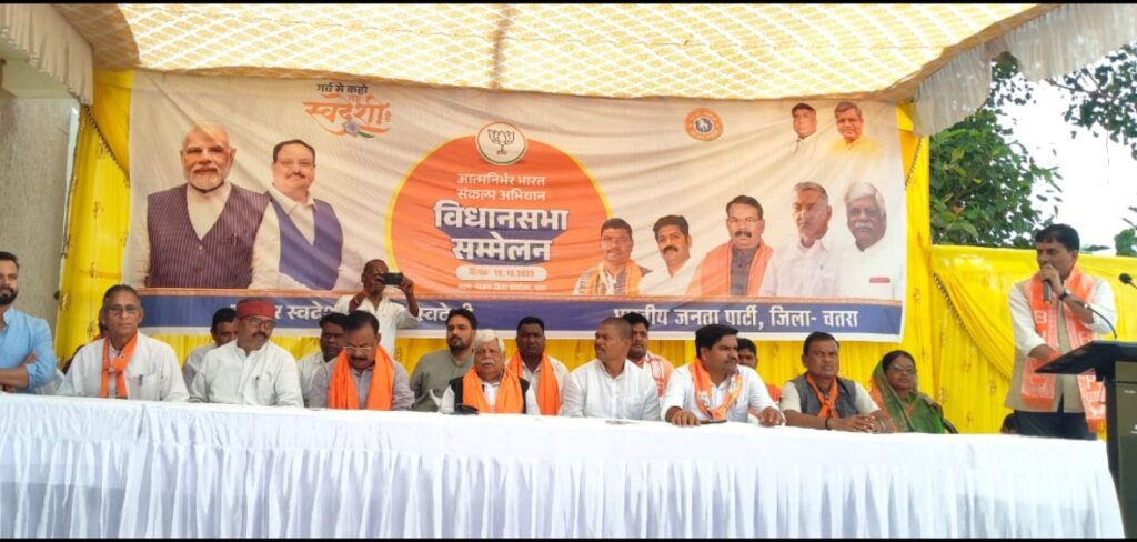 चतरा: भाजपा जिला कार्यालय में आत्मनिर्भर भारत संकल्प अभियान विधानसभा सम्मेलन का विधिवत शुभारंभ हुआ, जिसमें पूर्व डीजीपी व पलामू सांसद बीडी राम मुख्य अतिथि रहे। उन्होंने देशवासियों से विदेशी वस्तुओं के त्याग और देशी वस्तुओं के उपयोग का आह्वान किया। कार्यक्रम में चतरा विधायक जनार्दन पासवान ने कोरोना काल में भारत के वैज्ञानिकों द्वारा विकसित टीके की विशेष सफलता पर प्रकाश डाला। भाजपा जिला अध्यक्ष रामदेव सिंह भोक्ता और पूर्व जिला अध्यक्ष अशोक शर्मा ने भारतीय उत्पादों के प्रति लोगों की जागरूकता बढ़ाने की महत्वपूर्ण भूमिका बताई।कार्यक्रम को संबोधित करते हुए वक्ताओं ने प्रधानमंत्री नरेंद्र मोदी के ‘मेक इन इंडिया’ और ‘स्वदेशी’ के संदेश को घर-घर पहुंचाने का संकल्प जताया। भाजपा संगठन के वरिष्ठ नेताओं और सैकड़ों कार्यकर्ताओं की उपस्थिति में यह अभियान जन-जन तक स्वदेशी उत्पादों के महत्व को समझाने और आत्मनिर्भर भारत के लक्ष्य को पाने में सहायक होगा। मंच संचालन जिला महामंत्री मिथिलेश गुप्ता तथा समापन ग्रामीण मंडल अध्यक्ष सुबोध सिंह गुडू ने किया।यह अभियान राष्ट्रीय स्तर के ‘हर घर स्वदेशी’ आंदोलन का हिस्सा है, जो देश को विदेशी निर्भरता से मुक्त कर 2047 तक विकसित राष्ट्र बनाने की दिशा में बढ़ रहा है। स्थानीय स्तर पर चल रहे इस अभियान से उम्मीद है कि स्वदेशी को बढ़ावा मिलेगा और जनता में देशभक्ति की भावना प्रबल होगी।यह कार्यक्रम चतरा जिले में भाजपा द्वारा आत्मनिर्भरता को जन आंदोलन बनाने की दिशा में एक प्रेरणादायक कदम माना जा रहा है, जिसमें युवाओं, महिलाओं और व्यापारिक वर्ग की सक्रिय भागीदारी निश्चित रूप से इस आंदोलन को मजबूती देगा। सभी कार्यकर्ताओं ने मिलकर देश के विकास और समृद्धि के लिए अपने योगदान का संकल्प लिया।