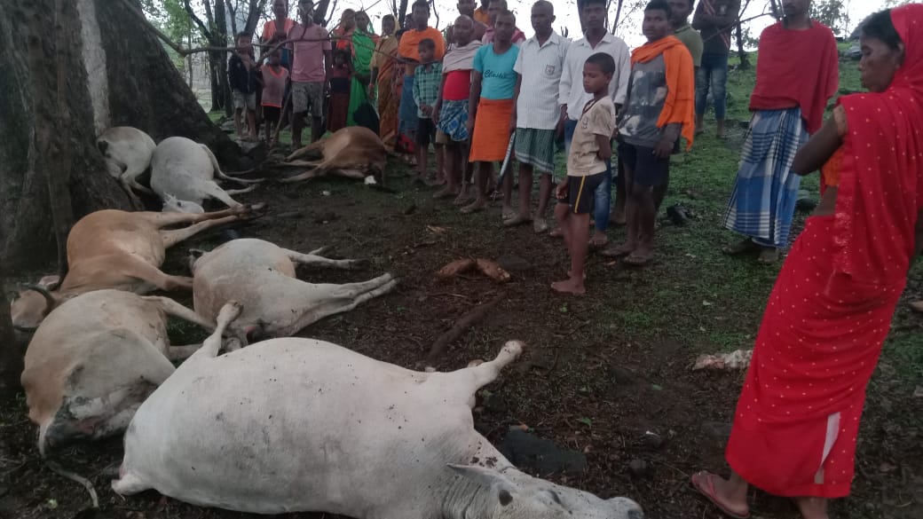 लावालौंग: प्रखण्ड क्षेत्र अन्तर्गत रिमी पंचायत के पसागन गांव में कुदरत की कहर गरीब किसान को सात पशुओं की मौत से गमगीन है। पसागन के दुर्यदेव गंझू, राजेश गंझू, जानकी गंझू और अनिल गंझू ने नम आंखों से दूरभाष के माध्यम से लावालौंग संवाददाता मो० साजिद को बताया कि हम सभी रोज की तरह पशुओं को चराने के लिए घर से कुछ दूरी पर ले गए थे की अचानक बारिश शुरू हो गई हम सभी लोग घर की ओर चले गए जब बारिश समाप्त हुई तो सात पशुओं को मौत के नींद में सोया पाया। स्थानीय जनप्रतिनिधियों तथा समाजसेवियों ने बताया कि इन सभी लोगों का जीवनयापन पशुओं से होता था, पंचायत के मुखिया सुग्गी देवी घटना स्थल पर पहुंचकर गरीब किसान को आश्वासन देते हुए कही की सरकार के नियमानुसार सभी लोगों को मुआवजा दिलाने की हर संभव प्रयास करूंगी। क्योंकि इन सभी का सहारा मुख्य रूप से पशु पालन ही था।