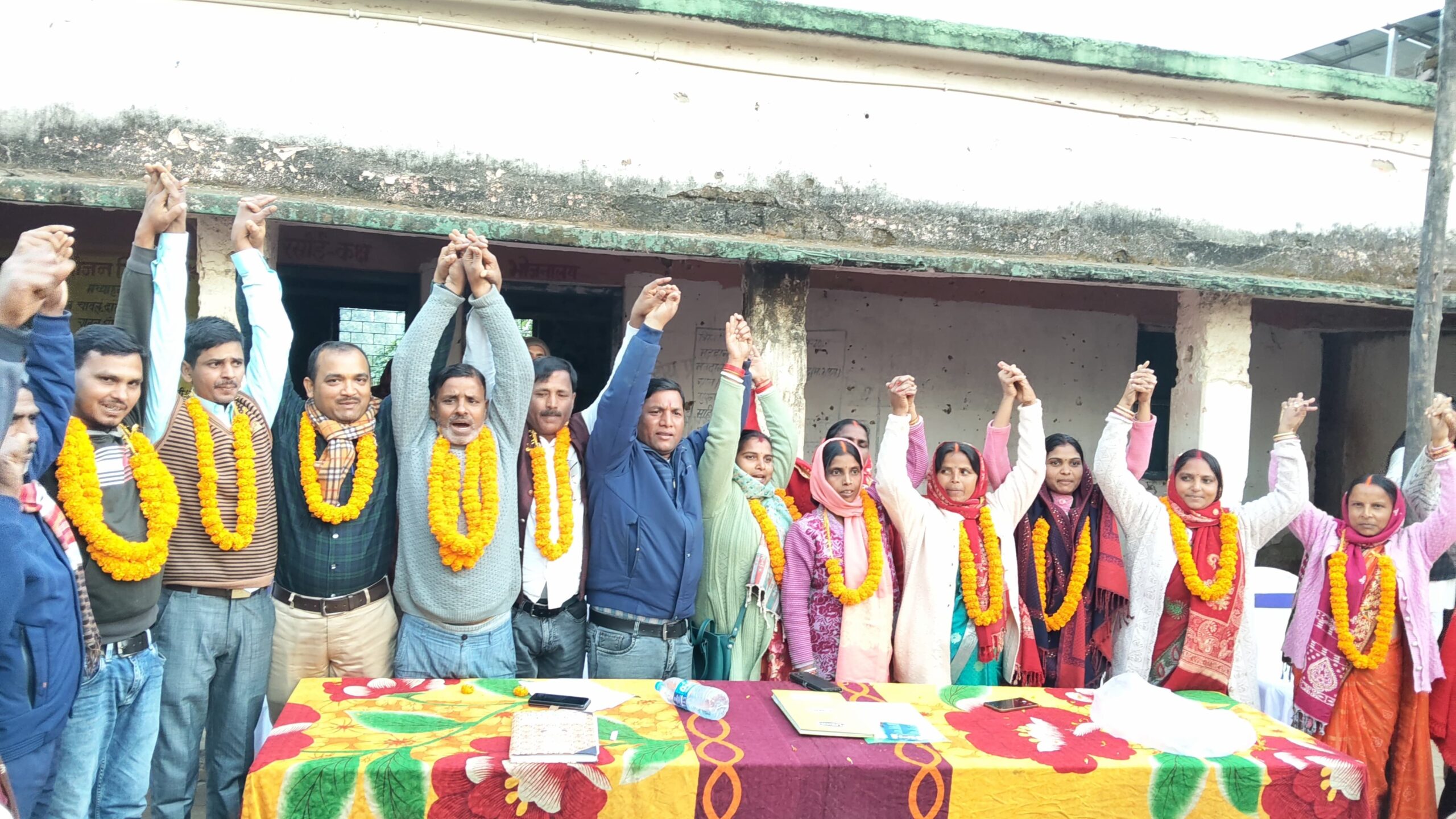 सभी निर्वाचित पदाधिकारियों को प्रखंड अध्यक्ष अर्जुन साहू  के द्वारा माला पहनाकर बधाई दिया गया।