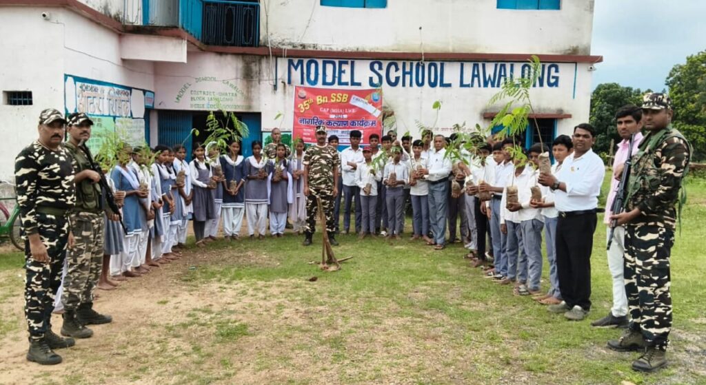 मॉडल स्कूल लावालौंग में एसएसबी नें किया वृक्षारोपण,वृक्षारोपण के दौरान छात्र व एसएसबी के जवान रहें शामिल।
