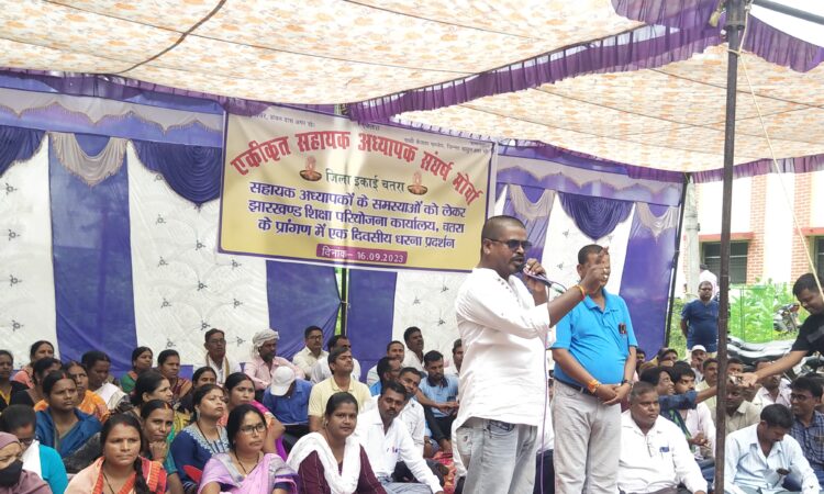 शिक्षा परियोजना के समीप एकीकृत सहायक अध्यापक संघर्ष मोर्चा चतरा इकाई के द्वारा दिया गया एक दिवसीय धरना प्रदर्शन