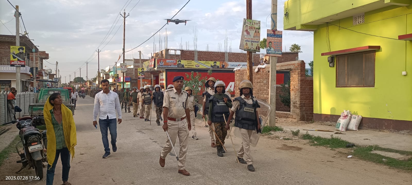 चतरा : प्रतापपुर प्रखंड अंतर्गत मुहर्रम पर्व को लेकर प्रखंड प्रशासन काफी अलर्ट है।शुक्रवार को प्रशासन ने प्रखंड के रामपुर,प्रतापपुर, नीमा,गोमे,बभने, बरवा टोला,प्रतापपुर मुख्य बाजार सहित कई मार्गो का दौरा फ्लैग मार्च करते हुए किया।इस फ्लैग मार्च का नेतृत्व सीओ जुल्फिकार अंसारी,बीडीओ मुरली यादव,एवं थाना प्रभारी लव कुमार ने किया।वही फ्लैग मार्च के दौरान जगह जगह पर गली चौक चौराहों एवं लोगो के छतों का निगरानी ड्रोन कैमरे की मदद से किया गया।तथा जिसके छत पर ईट,पत्थर,लाठी डंडे देखा गया उन्हें बजापते नोटिस।देते हुए जल्द हटाने का निर्देश दिया गया।वही प्रखंड के रामपुर,घोरीघाट, हूंमाजांग,भरही, एघारा, लिप्ता,सहित विभिन्न गांवों में बाइक से फ्लैग मार्च किया गया एवं लोगो से अपील किया गया की मुहर्रम पर्व को शांतिपूर्ण ढंग से मनाए। अंचलाधिकारी जुल्फिकार अंसारी ने बताया की वरीय पदाधिकारी के निर्देश पर यह फ्लैग मार्च निकाला गया है। इस दौरान सड़को का एवं लोगो के घर के छतों एवं जुलूस स्थल का निरीक्षण किया गया।तथा हुड़दंगी करने, एवं असमाजिक तत्व के लोगो पर कानूनी कार्रवाई किया जाएगा। वही पुलिस निरीक्षक सह थाना प्रभारी लव कुमार ने बताया की पर्व को शांतिपूर्ण ढंग से मनाना है।उपद्रवियों पर पुलिस की पैनी नजर है ।जुलूस में व्यवधान उत्पन्न करने वाले को बक्शा नही जाएगा।इस मौके पर पुलिस प्रशासन सहित जिला बल के जवान शामिल थे।