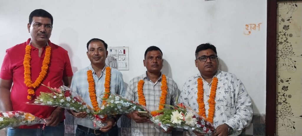 चतरा नगर व्यवसाई संघ की एक आवश्यक बैठक होटल केशव पैलेस में बुलाई गई ,बैठक में चतरा नगर व्यवसाय संघ के सभी सदस्यगण उपस्थित हुए। बैठक में नई कमेटी के चुनाव पर चर्चा की गई एवं पुरानी कमेटी के द्वारा किए गए कार्यों की चर्चा बारी-बारी से की गई तथा पिछले कार्य काल का लेखा-जोखा प्रस्तुत किया गया।। अध्यक्ष विपिन कुमार जायसवाल ने कहा कि वह 13 साल के कार्यक्रम में सभी व्यापारियों के हितों की रक्षा करने में किसी तरह का कोई कसर नहीं छोड़ी तथा व्यापारियों के समस्याओं को समाधान करने में अग्रसर रहे !समिति के सचिव विद्यासागर आर्य ने कहा कि कमेटी के सदस्य पूरा भरपूर सहयोग मिला इसके आधार पर समिति सफलतापूर्वक अपने कार्यकाल को पूर्ण की।कोषाध्यक्ष संतोष कुमार केसरी के द्वारा लेखा जोखा प्रस्तुत किया गया जिसे सर्वसम्मति से सदस्यों ने पारित किए।। तत्पश्चात नई कमेटी के चुनाव प्रणाली को रखा जिसमें सर्वसम्मति से नगर अध्यक्ष श्री विद्यासागर जी को बनाया गया सचिव श्री शैलेंद्र खंडेलवाल जी, कोषाध्यक्ष श्री विकास केसरी जी को बनाया गया।। वहीं उपाध्यक्ष नवीन कुमार जयसवाल सतीश गुप्ता नौशाद आलम को बनाया गया शह सचिव के रूप में प्रमोद कुमार सिन्हा जी को बनाया गया जिसे पूरी सदन ने ताली बजाकर अभिनंदन एवं स्वागत किए।। बैठक में संरक्षक श्री शंकर तुलसियान विगनअग्रवाल प्रमोद कुमार राजीव कुमार मित्तल जी उपस्थित रहे तथा अपने मार्गदर्शन में चुनाव सफलता पूर्वक संपन्न हुआ इसके लिए बधाई दी है और आशीष दिए आने वाले दिन में बेहतर कार्य करती रहें इसके लिए पूर्णत सहयोग देने का भी आश्वासन दिए। नवगठित समितियों को माल्यार्पण एवं गुलदस्ता देकर अभिनंदन स्वागत किया गया।। सभी संरक्षकको को बुके एवं गुलदस्ता देकर स्वागत किया गया कार्यक्रम का समापन मनोज कुमार तुलसियान जी के द्वारा धन्यवाद ज्ञापन किया गया!इस बैठक मैं।। श्री संजीव कुमार खंडेलवाल अजय कश्यप संतन प्रसाद केसरी शिव केसरी विकी कुमार अमित कुमार उमेश केसरी अजय केसरी संतोष गुप्ता संतोष केसरी मनोज कुमार धनेश्वर प्रजापति अशोक प्रसाद कन्हैयालाल अग्रवाल मनोज कुमार अग्रवाल एवं चकरनगर के सभी सम्मानित सदस्य गण मौजूद थे