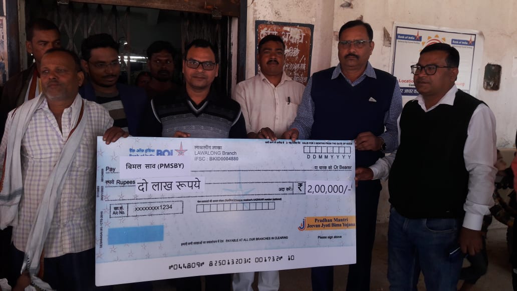 लावालौंग/चतरा :प्रखंड क्षेत्र के दो मृतकों के परिजनों को बैंक ऑफ़ इंडिया लावालौंग के द्वारा दो-दो लाख रुपए की राशि दी गई है।उक्त विषय की जानकारी देते हुए बैंक ऑफ़ इंडिया के एलडीएम रविंद्र कुमार सिंह नें बताया कि कटिया पंचायत के बनचतरा गांव निवासी दिलीप साहु की मौत सड़क दुर्घटना में हो गई थी।वहीं टुनगून गांव निवासी गुड्डू सिंह भोक्ता की मृत्यु भी बिमार की स्थिति में हुई थी।उक्त दोनों व्यक्तियों नें पूर्व में ही प्रधानमंत्री जीवन ज्योति बीमा एवं प्रधानमंत्री सुरक्षा बीमा करवा रखा था।उक्त दोनों व्यक्तियों के मृत्यु के बाद बैंक ऑफ़ इंडिया नें संज्ञान लेते हुए उनके मौत के बाद दिलीप साहू के नोमिन उसके पिता विमल साव एवं गुड्डू सिंह भोक्ता के नॉमिनी उसकी पत्नी संगीता देवी को बीमा की राशि दो दो लाख रुपए मुहैया कराया है।संगीता नें एलडीएम को बताया कि पति की मृत्यु के बाद मैं छोटी-मोटी मुर्गी फार्म का काम शुरू की है। इस राशि का उपयोग करके मैं बृहद तरीके से अपने व्यापार को बड़ा कर सकती हूं।मौके पर एलडीएम एवं जेएसएलपीएस के जिला प्रबंधक वित्तीय समावेशन आमोद कुमार सिंह नें लोगों को जानकारी देते हुए कहा कि प्रत्येक व्यक्ति प्रधानमंत्री सुरक्षा बीमा एवं प्रधानमंत्री जीवन ज्योति बीमा को कराकर अपने पिछे छुट जाने वाले पत्नी एवं बच्चों के भविष्य को सुदृढ़ करें। पति और पिता के मृत्यु के बाद परिजनों को बेसहारा होकर किल्लातों का सामना करना पड़ता है।इस स्थिति में बीमा के दो-दो लाख रुपए उनके लिए मिल के पत्थर साबित हो सकते हैं।चेक वितरण के दौरान बीडीओ विपिन कुमार भारती एवं बैंक ऑफ़ इंडिया के शाखा प्रबंधक संदीप कुमार नें अहम भूमिका निभाई।