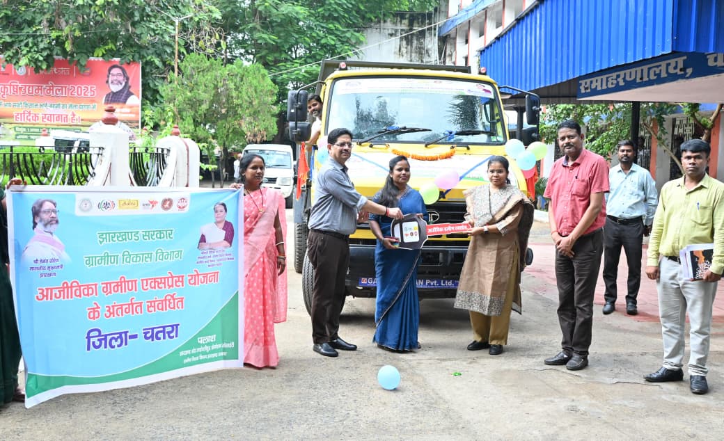 चतरा में आजीविका ग्रामीण एक्सप्रेस योजना का शुभारंभ,उपायुक्त एवं उप विकास आयुक्त ने हरी झंडी दिखाकर दो मालवाहक एवं तीन सवारी वाहनों को किया रवाना