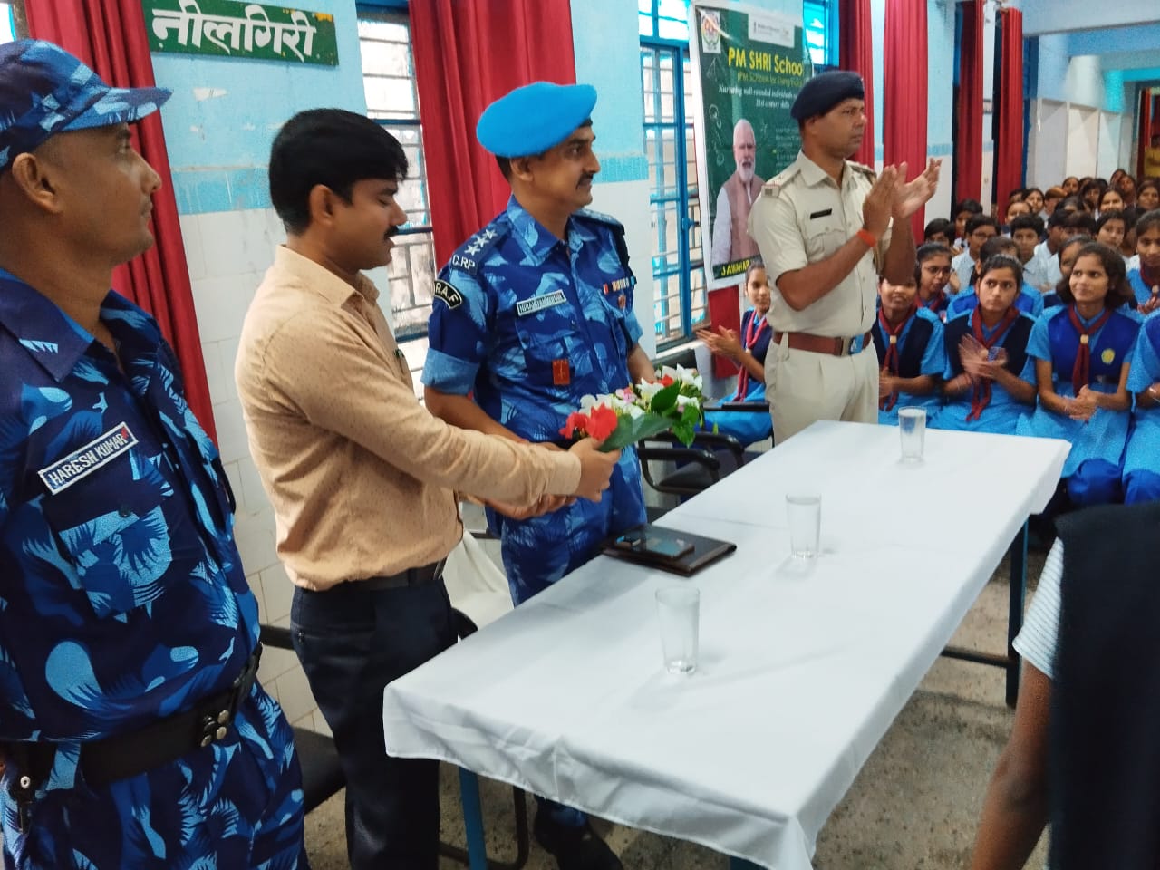 चतराः जिले में रैपिड एक्शन फोर्स के 106 बटालियन की टीम परिचयात्मक अभ्यास को लेकर पिछले दो दिनों चतरा में रुकी हुई है। इस दौरान रैपिड एक्शन फोर्स के 106 बटालियन के द्वारा शहर में विभिन्न तरह के कार्यक्रम किए जा रहे हैं. जिसमें दूसरे दिन शहरी क्षेत्र में फ्लैग मार्च किया गया, जबकि तीसरे दिन शुक्रवार को जवाहर नवोदय विद्यालय चतरा, में रैफ के सहायक कमांडेंट निरंजन कुमार व निरीक्षक हरेश कुमार के अध्यक्षता में जवानों द्वारा विद्यालय के विद्यार्थियों को बेटी पढाओ बेटी बचाओ तथा नशा मुक्त एंव शस्त्र प्रदर्शन कर जानकारी दी गई। इस दौरान विद्यालय के प्रधानाचार्य श्री शशि भूषण मिश्रा ने रैफ के सहायक कमांडेंट का स्वागत गुलदस्ता देकर किया. मौके पर सहायक कमांडेंट निरंजन कुमार व अन्य पदाधिकारियों ने बच्चों को हथियारों की जानकारी देते हुए नशा से दूर रहने की सीख दी. इस मौके पर विद्यालय के प्रिंसिपल, परिचारी ज्ञानेंद्रपति, शिक्षक व रैफ के जवान मौजूद थे. इस कार्यक्रम से बच्चों में खासा उत्साह देखा गया.
