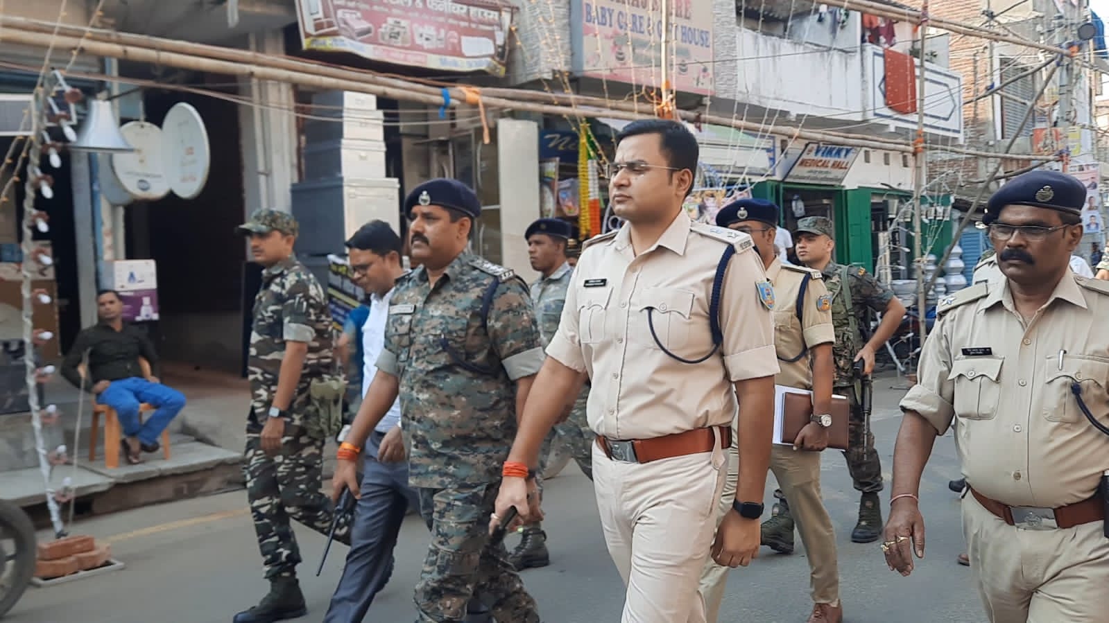 Home » उपद्रवियों से निपटने के लिए हर पूजा पंडाल के चौक चौराहे पर लगाए पुलिस का पहरा।