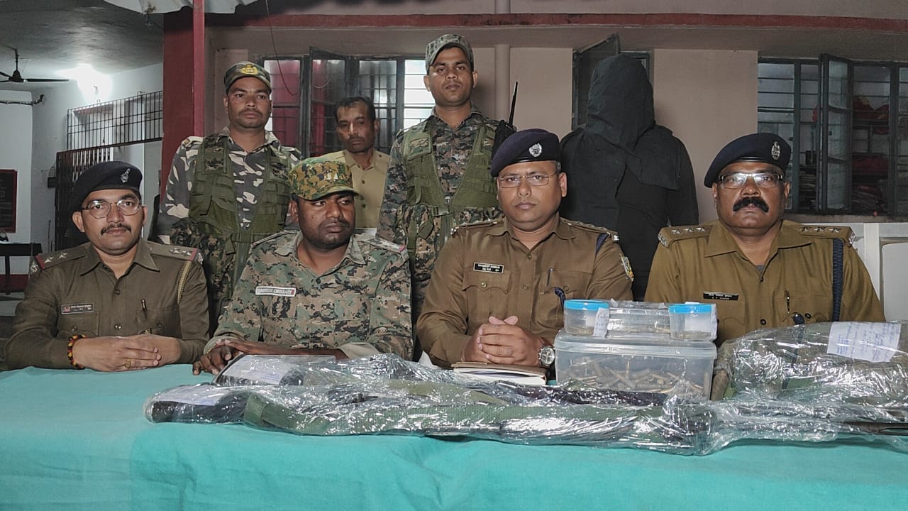 चतरा : एसपी राकेश रंजन के नेतृत्व में सुरक्षाबलों ने टीएसपीसी नक्सलियों को बड़ा झटका दिया है । वशिष्टनगर जोरी थाना क्षेत्र के नारायणतरी ईलाके में हुए पुलिस-नक्सली मुठभेड़ में शामिल दुर्दांत नक्सली एरिया कमांडर सहेंद्र गंझू दस्ते का मारक सदस्य राजदेव सिंह भोक्ता उर्फ रामचंद्र उर्फ जेठा गंझू को पुलिस ने गिरफ्तार किया । गिरफ्तार अभियुक्त के पास से दो लोडेड एसएलआर पुलिस राइफल, 03 एसएलआर राइफल का मैगजीन, एसएलआर राइफल का 7.62 एमएम का 210 चक्र जिंदा कारतूस, 02 कैमोफ्लाइज मैगजीन पाउच, 01 एंड्राइड मोबाइल, एसएलआर राइफल का 7.62 एमएम का 09 खोखा, इंसास राइफल का 5.56 एमएम का 07 खोखा बरामद किया गया । गिरफ्तार नक्सली जेठा ने ही अफीम विनष्टीकरण अभियान से लौट रहे पुलिस पार्टी को परिलक्षित कर चलाई थी गोली। मौके पर एरिया कमांडर सहेंद्र गंझू समेत 16 नक्सलियों का दस्ता था मौजूद। सदर थाना क्षेत्र के हेठबैरियों से हुई गिरफ्तारी। हमले में सदर थाना के जवान सिकंदर सिंह व जोरी थाना के जवान सुकन राम हुए थे शहीद। वहीं आरक्षी आकाश सिंह गोली लगने से हो गए थे बुरी तरह जख्मी। एसडीपीओ संदीप सुमन ने प्रेस कांफ्रेंस कर दी जानकारी। कहा नक्सलियों के संरक्षण में सुदूरवर्ती इलाकों में हो रही है अफीम की खेती। अफीम के पैसे से आत्मनिर्भर बन रहे नक्सली, अफीम उत्पादन के लिये तस्करों और माफियाओं को देते हैं आर्थिक सहयोग। एसडीपीओ ने बताया की नक्सलियों के विरुद्ध जारी रहेगा अभियान। अफीम माफियाओं का भी होगा खात्मा।