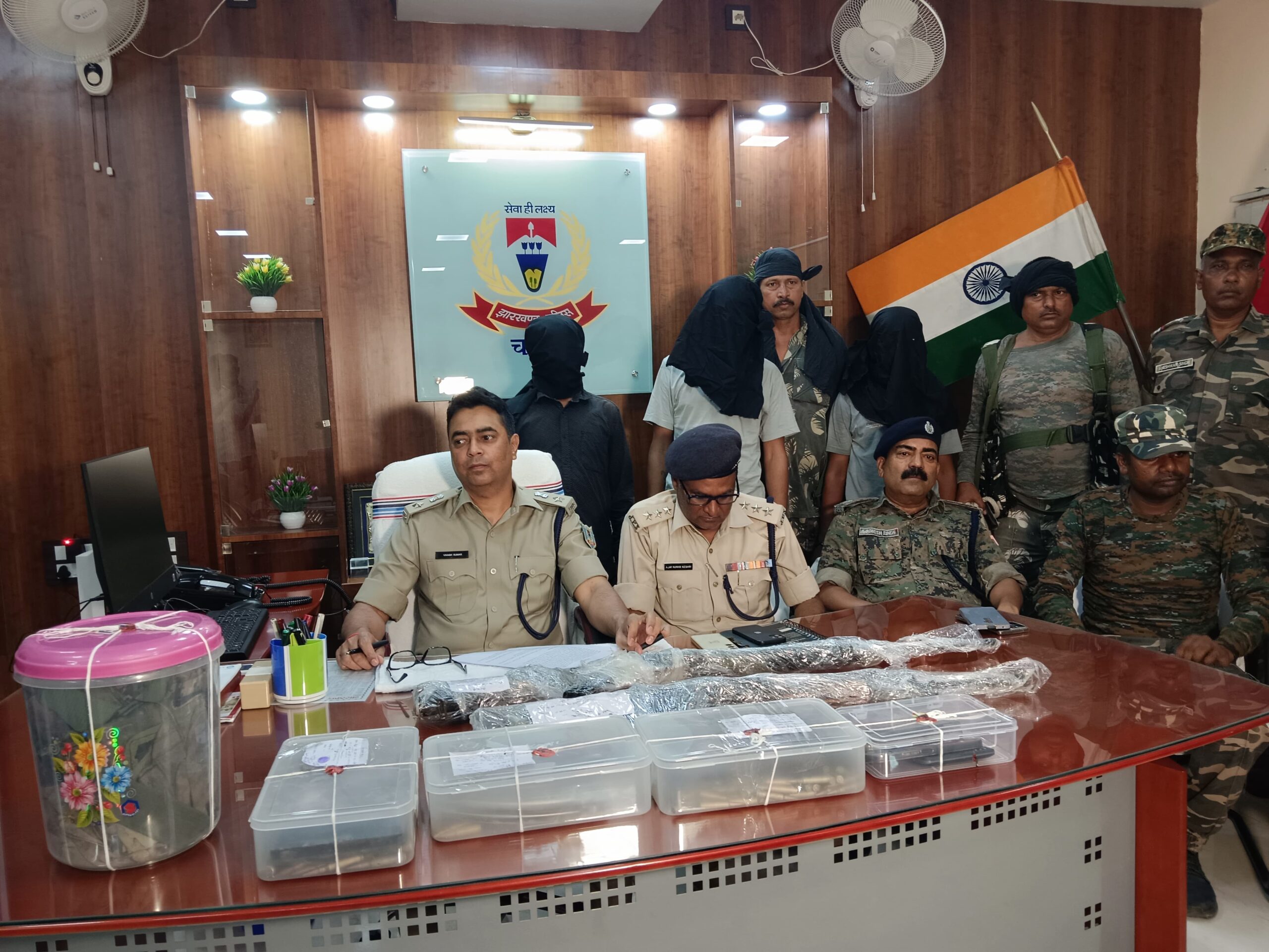 चतरा पुलिस अधीक्षक को गुप्त सूचना प्राप्त हुई कि T.S.P.C नक्सली संगठन के कमांडर हरेन्द्र गंझू, कुणाल गंझू, इरफान गंझु अपने अन्य सशस्त्र दस्ता सदस्यो के साथ चतरा- पलामू के सीमावर्ती क्षेत्र कुन्दा थाना के सिकीदाग, कुजरम के जंगली क्षेत्र में किसी बड़ी घटना को अंजाम देने के लिए एकत्रीत हुए है। उक्त सूचना के सत्यापन एवं आवश्यक कार्रवाई हेतु अनु०पु०पदा० सिमरिया के नेतृत्व में छापामारी टीम का गठन किया गया। जिसमें पु०नि० अवधेश सिंह प्रतापपुर अंचल, थाना प्रभारी कुन्दा एवं थाना प्रभारी लावालौंग को शामिल किया गया। उक्त छापामारी टीम द्वारा त्वरित कार्रवाई करते हुए ग्राम सिकिदाग के पश्चिम मेरूहनिया टॉड नारीदरी नदी के पास से भागने के क्रम में हथियारबंद तीन उग्रवादीयों को गिरफ्तार किया गया। शेष उग्रवादी जंगल एवं पहाड का लाभ उठाकर भागने में सफल रहे। छापामारी के क्रम नक्सली इरफान गंझु के पास से 1. INSAS राईफल लोडेड अवस्था में तथा पाउच में दो मैगजीन, एवं कुल 161 राउण्ड 5.56 MM जिन्दा गोली व महेन्द्र गंझू उर्फ पाल्टा के पास एक SLR राईफल लोडेड अवस्था में तथा पाउच में। मैगजीन तथा 164 राउण्ड 7.62 MM का जिन्दा गोली वहीं छोटु भुईया के पास से पाउच में एक मैगजीन तथा AK47 का 30 राउण्ड जिंदा गोली बरामद किया गया। इस संबंध में कुन्दा थाना कांड सं0 29/24 दिनांक 14.06.2024 धारा 147/148/149/385/387/120(B) भा0द0वि0, 25(1-A)/26/35 आर्म्स एक्ट एवं 17 (i) (ii) CLA एक्ट अंकित किया गया है।