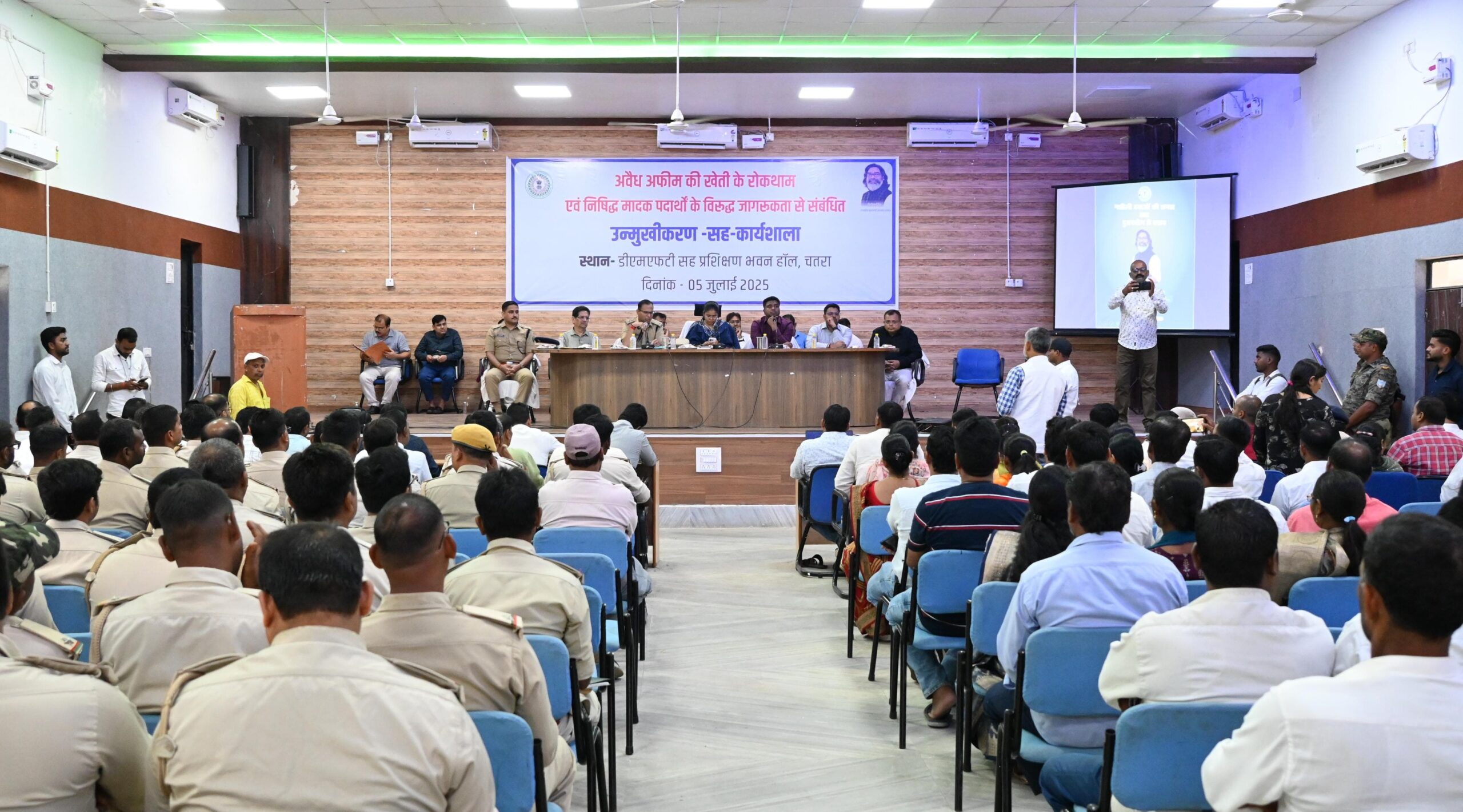 चतरा जिले में अवैध अफीम की खेती की रोकथाम एवं निषिद्ध मादक पदार्थों के विरुद्ध जागरूकता को लेकर एक जिला स्तरीय उन्मुखीकरण सह कार्यशाला का आयोजन किया गया। यह कार्यशाला जिला खनिज फाउंडेशन ट्रस्ट सह प्रशिक्षण भवन हॉल, चतरा में आयोजित की गई, जिसकी अध्यक्षता उपायुक्त श्रीमती कीर्तिश्री जी ने की।