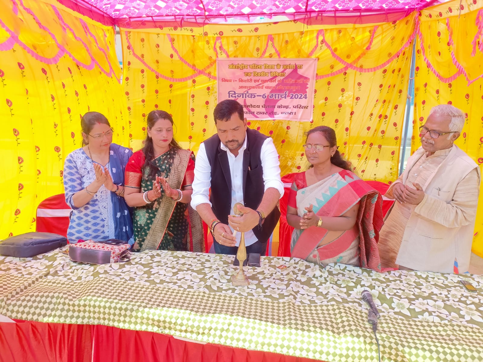 चतरा: ग्रामोदय चेतना केंद्र, परिसर टेलीकॉम टावर रोड, चतरा परिसर में आयोजित अंतर्राष्ट्रीय महिला दिवस के अवसर पर एकदिवसीय सेमिनार में बतौर मुख्य अतिथि ज़िप उपाध्यक्ष बिरजू तिवारी जी शामिल हुए कार्यक्रम का शुभारंभ बतौर मुख्य अतिथि तिवारी जी ने दीप प्रज्वलित कर किया कार्यक्रम का विषय किशोरी एवं युवा वर्ग के महिलाओं की आवश्यकताये चाहत और कानून पर महिलाओं को समझाया गया। श्री तिवारी जी ने अपने सम्बोधन में कहा कि स्त्री संस्कृति एवं सभ्यता की संवाहक तथा सन्तान की प्रथम गुरु है। मनुष्य का सारा जीवन स्त्री को केंद्रित कर ही अपना पथ निर्धारित करता है। यदि स्त्री केंद्र से हटकर परिधि पर आ जाये तो व्यक्ति का जीवन अनियंत्रित और कई बार उद्देश्य हीन भी हो जाता है। महिलाओं के सम्मान में बढ़ोतरी तभी संभव जब महिला शिक्षित हो मां अपनी संतान की प्रथम गुरु होती है अतः चाहिए कि सभी माताए अपने बच्चों को स्त्री के सम्मान करना सिखाए महिलाओं को सकारात्मक सोच के साथ अपनी आत्मविश्वास को बढ़ाना चाहिए।इस अवसर पर गंधारिया मुखिया अनीता यादव जी,बद्री वर्मा जी,सविता बनर्जी समेत सैकड़ों मातृशक्ति उपस्थित रहे।